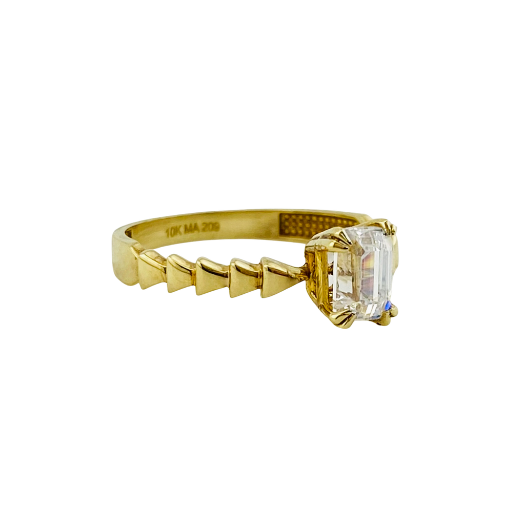 Anillo de compromiso solitario con zirconia central corte baguette y triángulos laterales