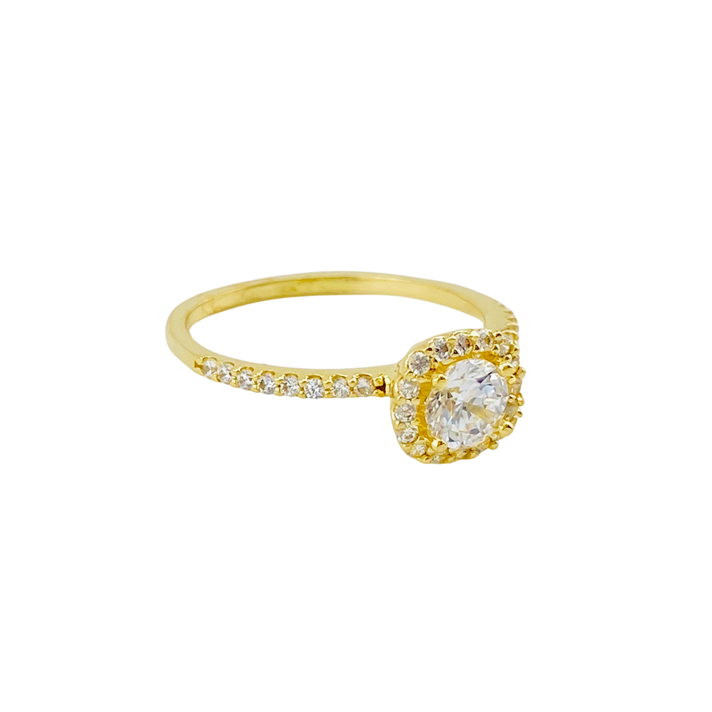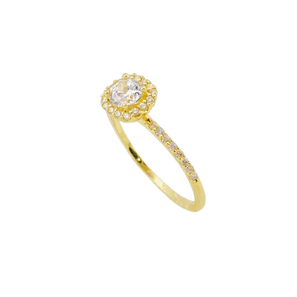 Anillo de compromiso solitario con zirconia central con halo y laterales
