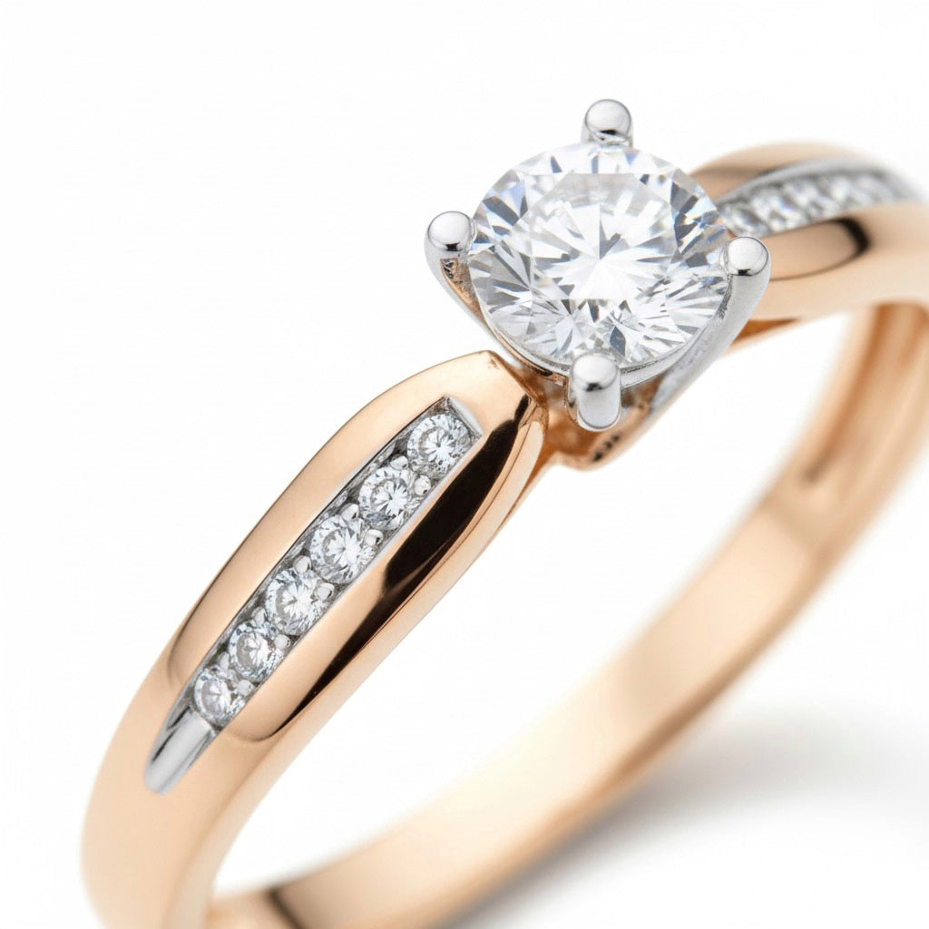 Anillo de compromiso ilusión de oro rosa 14k con 15 puntos de diamantes