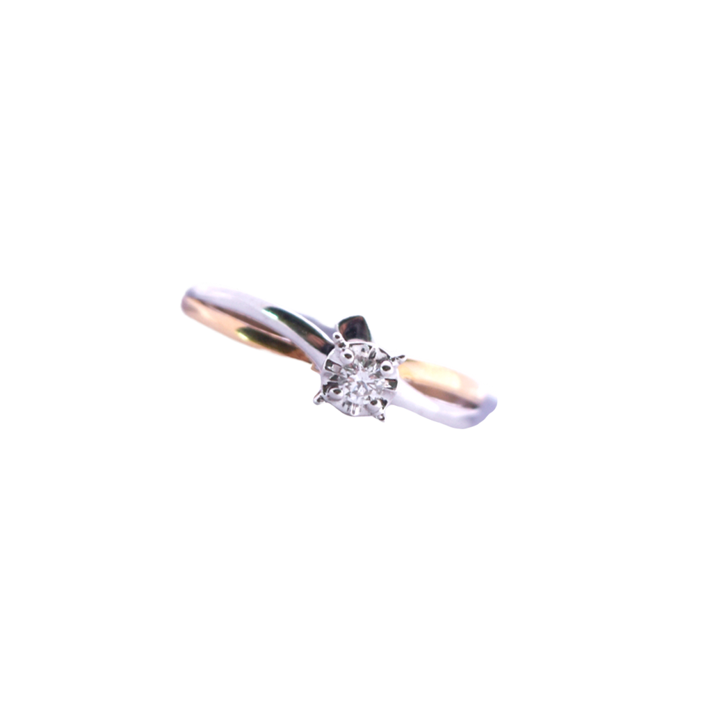 Anillo de compromiso solitario de oro combinado 14k con 6 puntos de diamantes