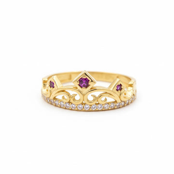 • Anillo para quinceañera con forma de corona adornado con tres piedras rosas y zirconias en corte brillante