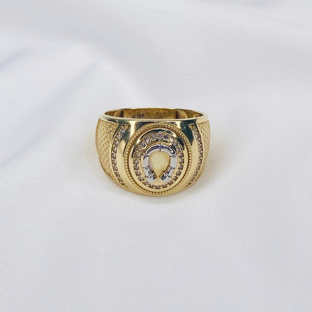 • Anillo para caballero con silueta de herradura en el centro rodeada de zirconias en corte brillante