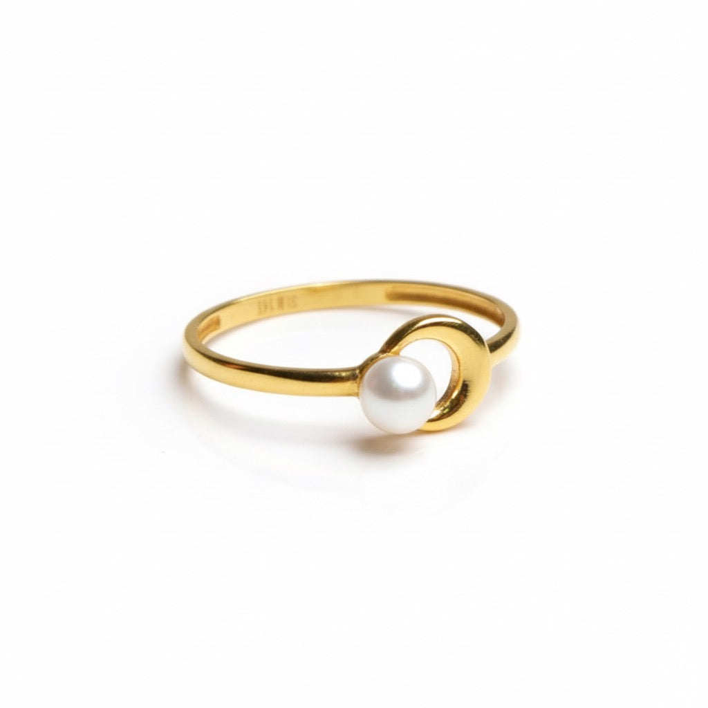 • Anillo para dama silueta con forma de luna adornada con una perla