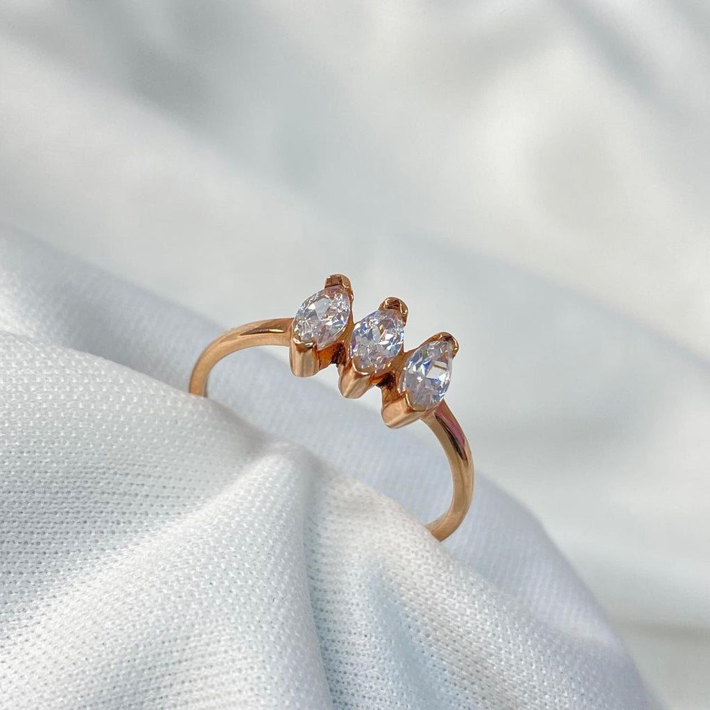 • Anillo para dama adornada con tres zirconias en corte marquesa