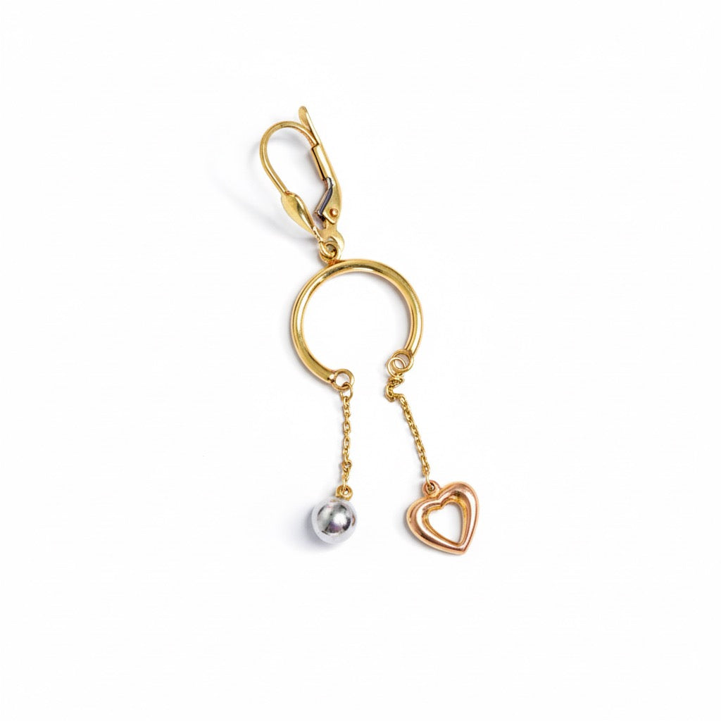 • Aretes para mujer con esfera y corazón colgantes de una argolla