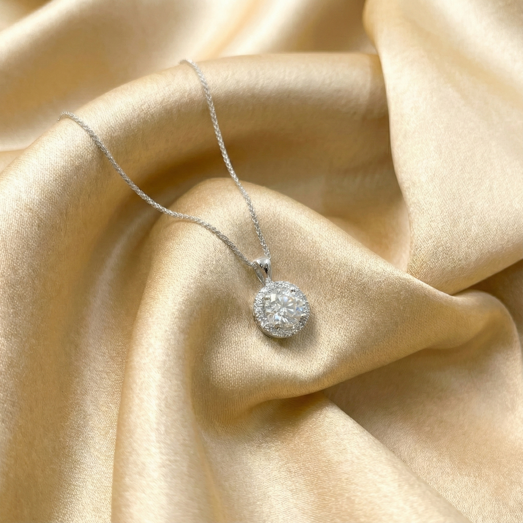 Gargantilla de oro blanco 14k con dije de 1.51 carats de diamante LAB-GROWN