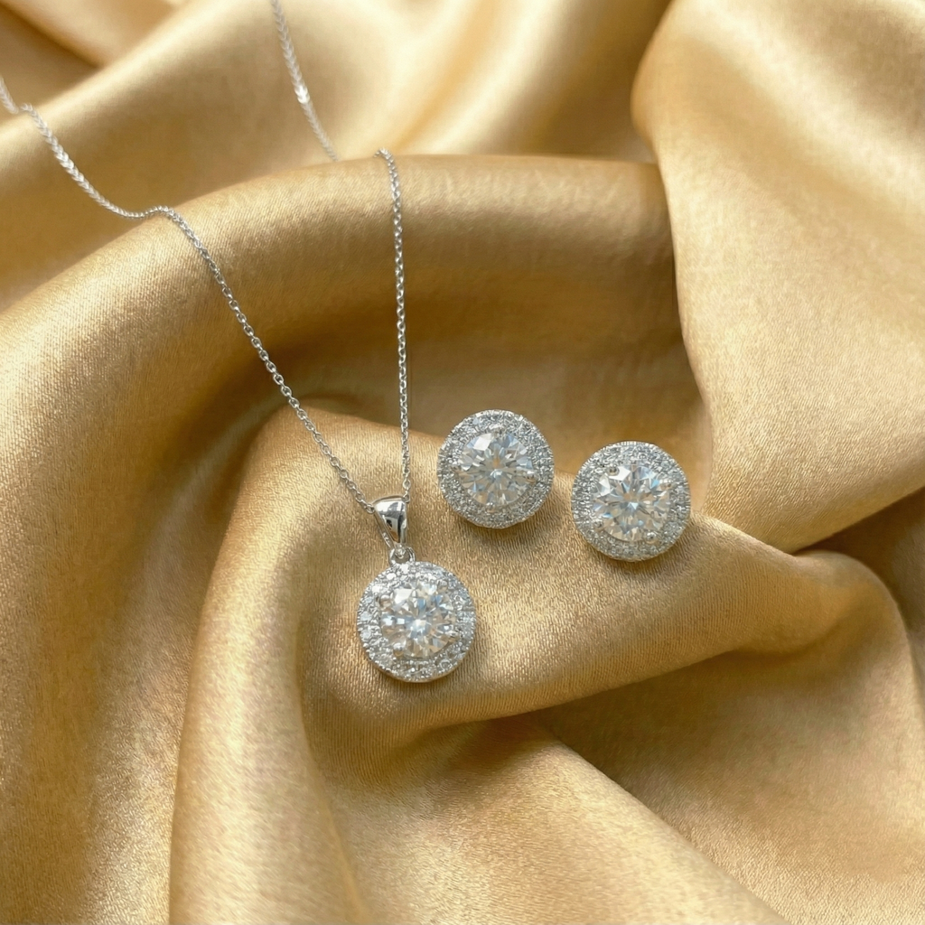 Juego de Gargantilla y Broqueles Oro 14k con 3.51 Cts. de Diamante