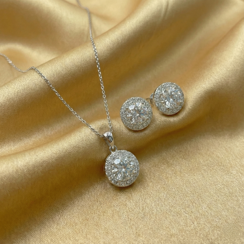Juego de Gargantilla y Broqueles Oro 14k con 2.27 Cts. de Diamante