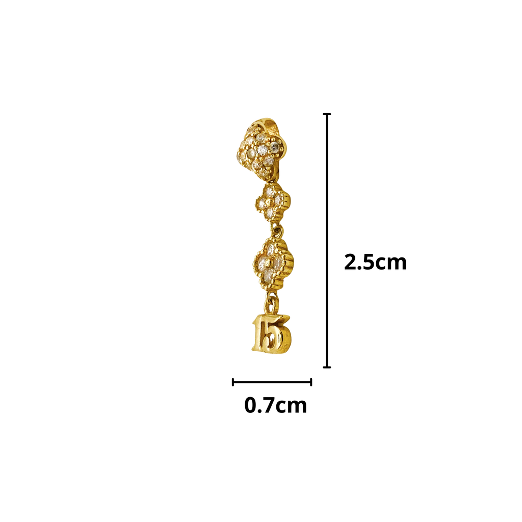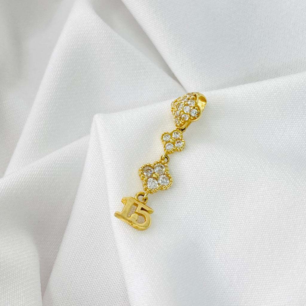 Dije para quinceañera tréboles adornados con zirconias y dije "15"