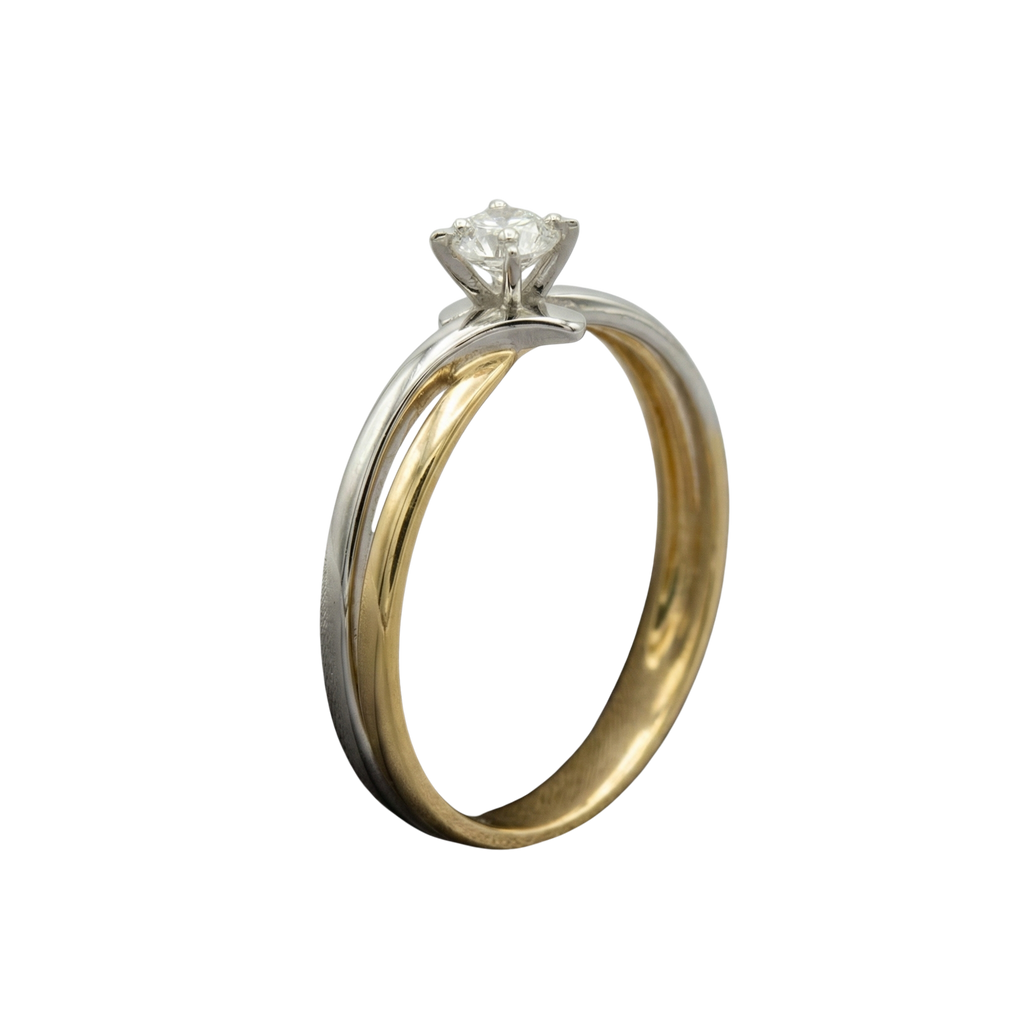 Anillo de compromiso solitario de oro combinado 14k con 6 puntos de diamantes