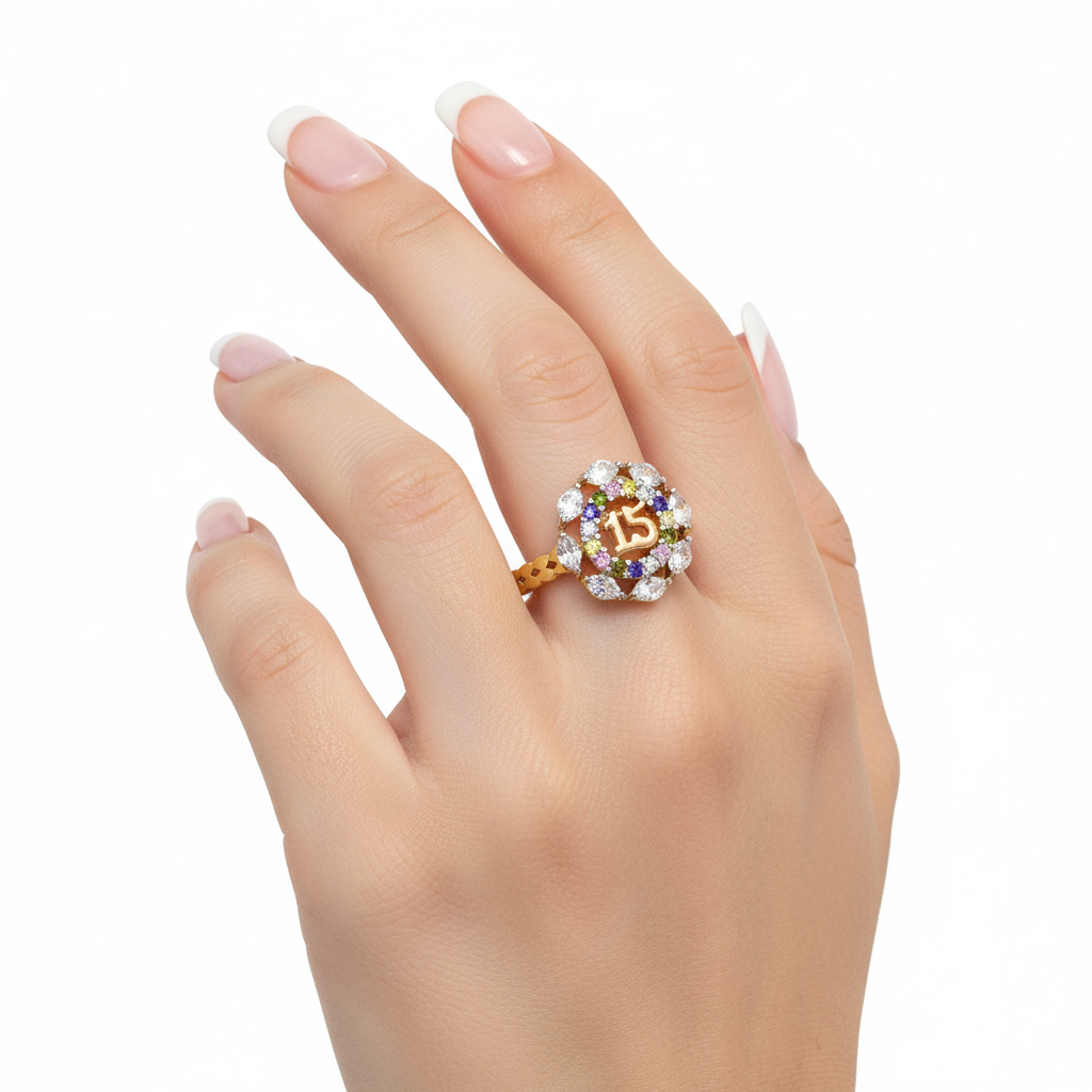 Anillo 15 Años Corona Oro 10k con Zirconias