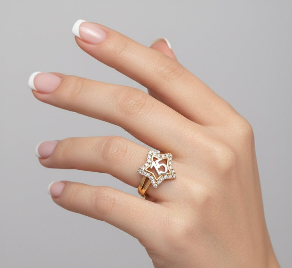 Anillo 15 Años Estrella Oro 10k con Zirconia