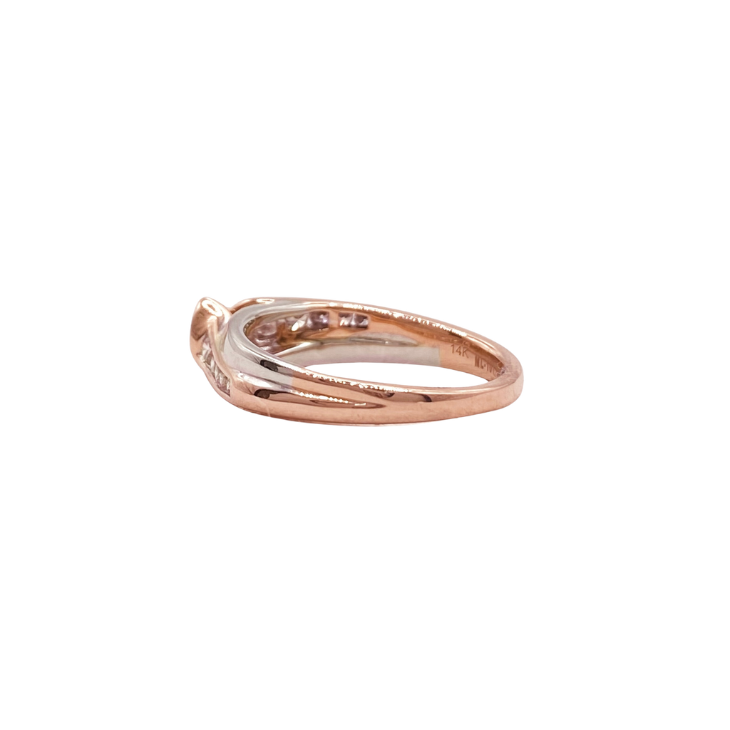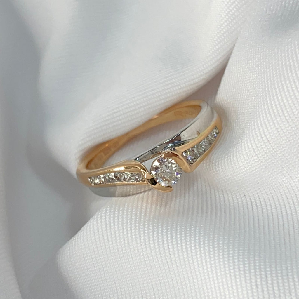 Anillo de compromiso central con laterales de oro combinado rosa con blanco 14k con 26 + 25 puntos de diamante