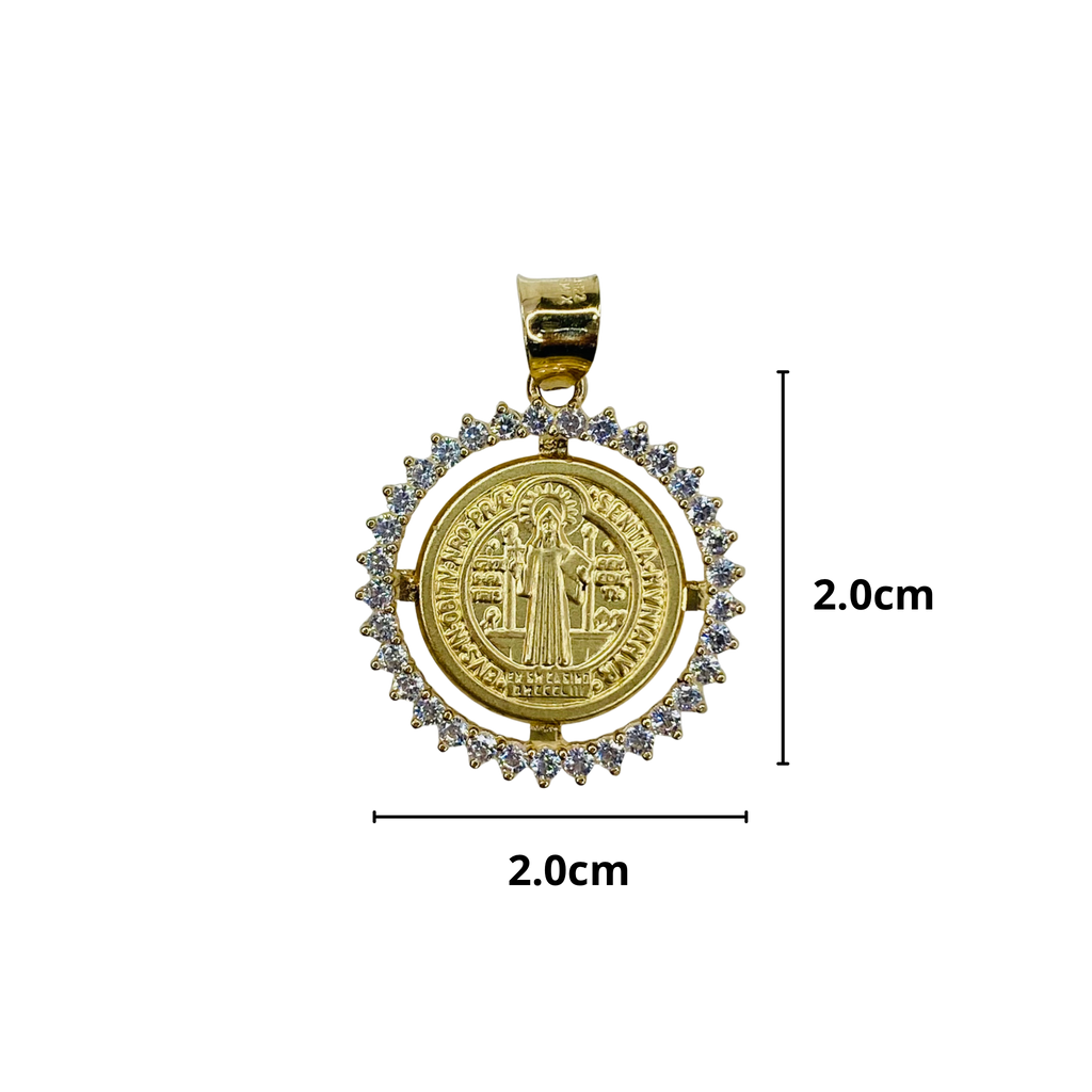 Medalla San Benito Oro 10k con Zirconias