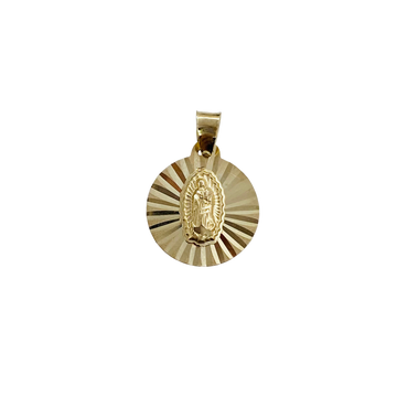 Medalla redonda con imagen en relieve de Virgen de Guadalupe