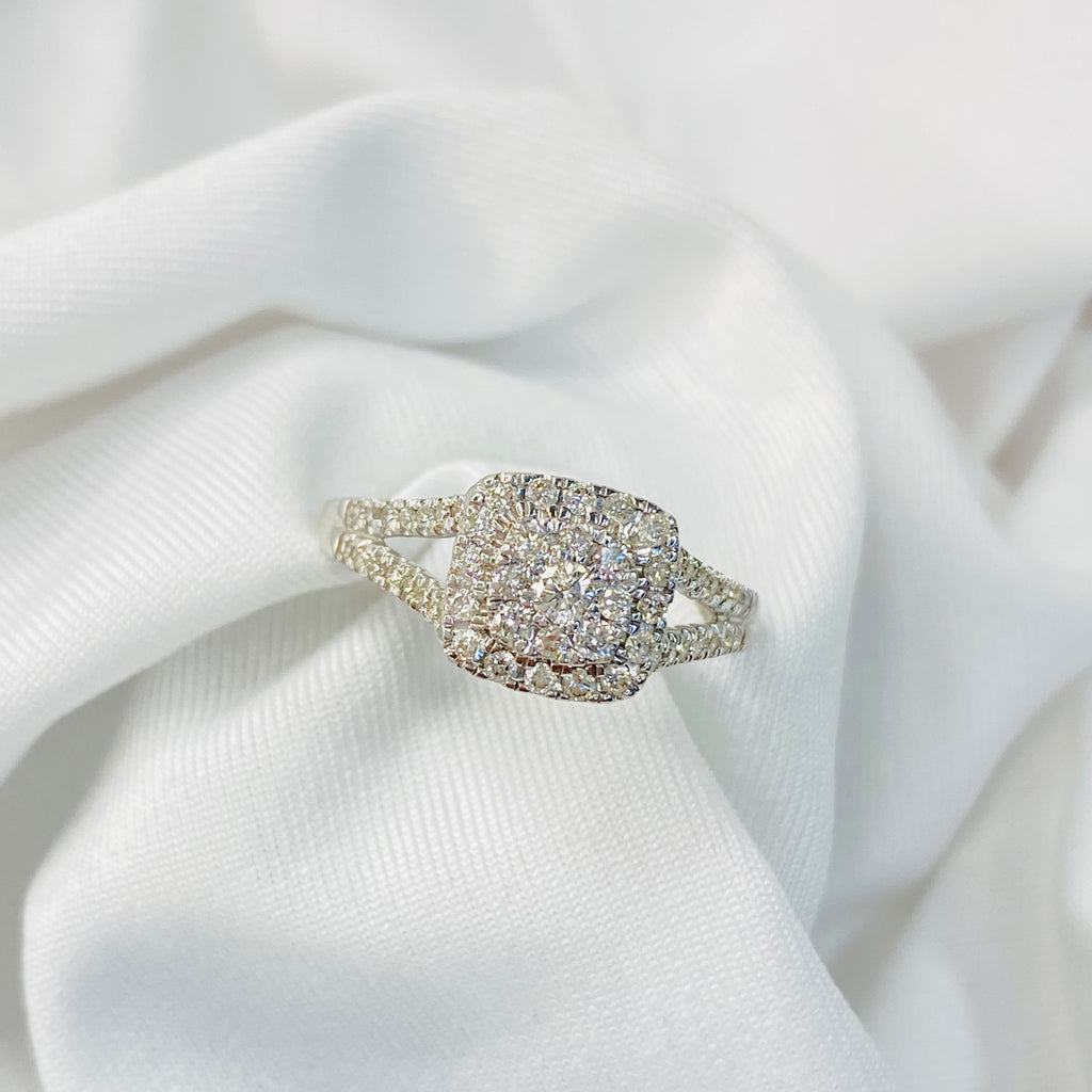 Anillo de compromiso catedral de oro blanco 14k con 50 puntos de diamante