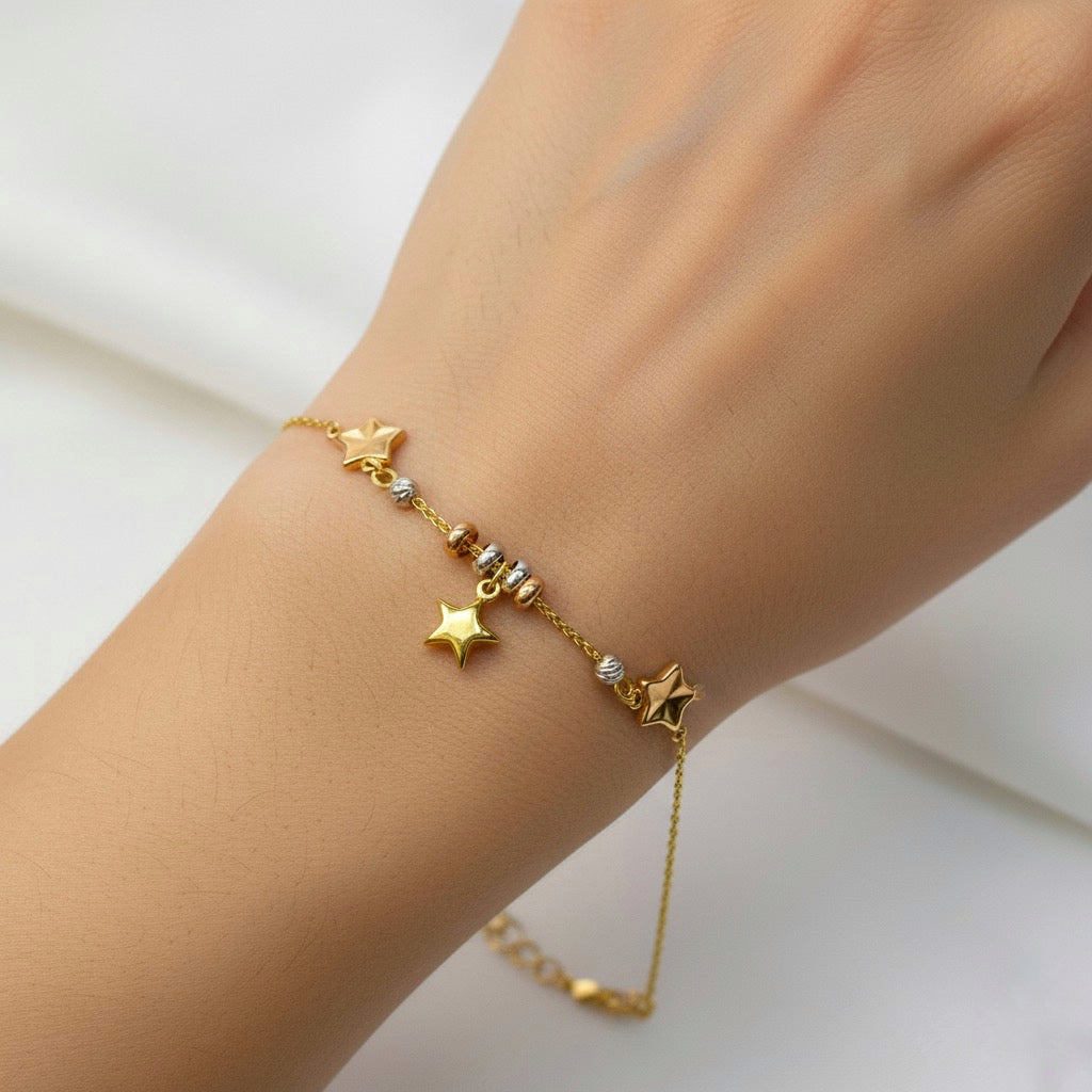 • Pulso tejido tipo cable adornado con estrellas, bolitas y zirconias