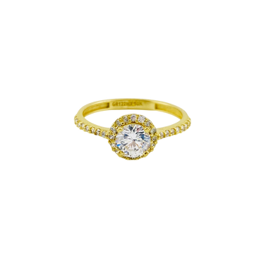 Anillo de compromiso solitario con zirconia central con halo y laterales