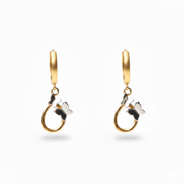 • Aretes para mujer adornados por una gota colgante con dos mariposas
