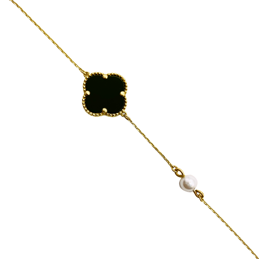 Tobillera para dama eslabones y trébol esmalrado color negro